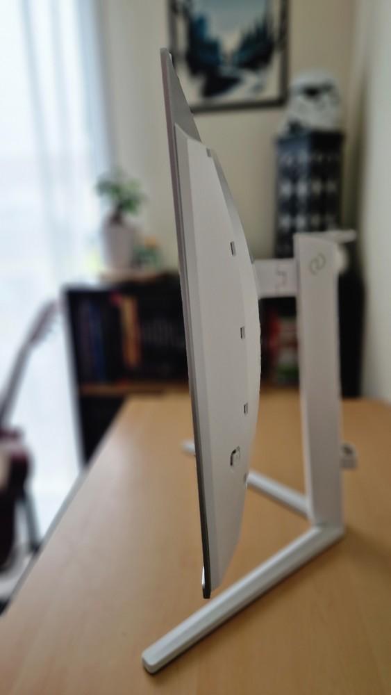 Côté look, Philips reste fidèle à sa gamme Evnia avec un design blanc épuré et des accents argentés. Le pied en forme de V assure une bonne stabilité et permet tous les réglages nécessaires : hauteur, inclinaison et même le mode pivot pour une utilisation verticale.